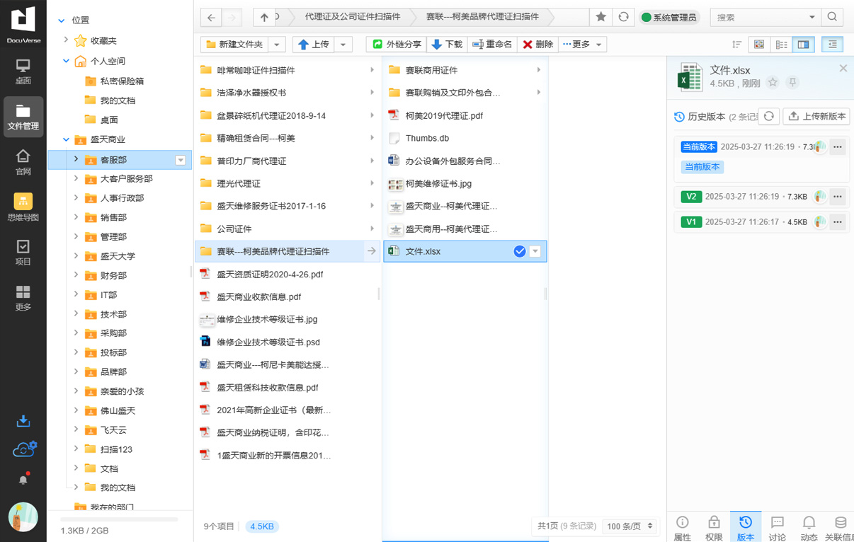 集中散落在员工各自电脑上的资料,为设计图稿、研报、合同、协议、公告、档案等文件提供统一的管理平台;