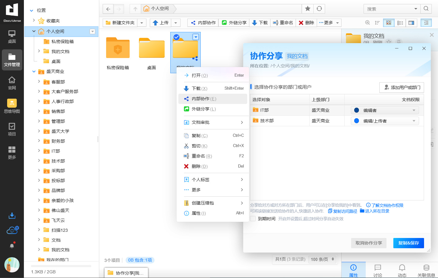 DocuVerse云办公能够为企业实现高效、安全的文件共享、协作办公需求,满足多种复杂场景下的协作需求。